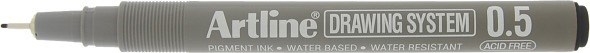 • Ritpenna med 0,5 mm metallkapslad spets. Pennan är vattentät efter att den torkat och blir inte blöt. Innehåller vattenbaserat bläck utan xylen.