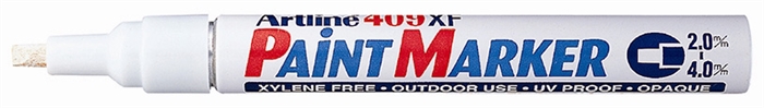 • Märk med 2-4 mm mejselspets för permanent märkning både inomhus och utomhus. Lämplig för både metall, gummi, trä, glas och plast. Markören kommer i en aluminiumhylsa, och är mycket vattentät och bleker inte. Innehåller pigment utan xylen.