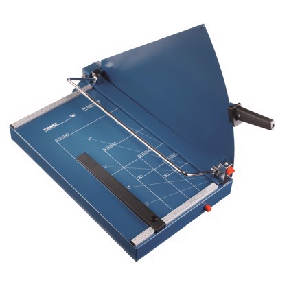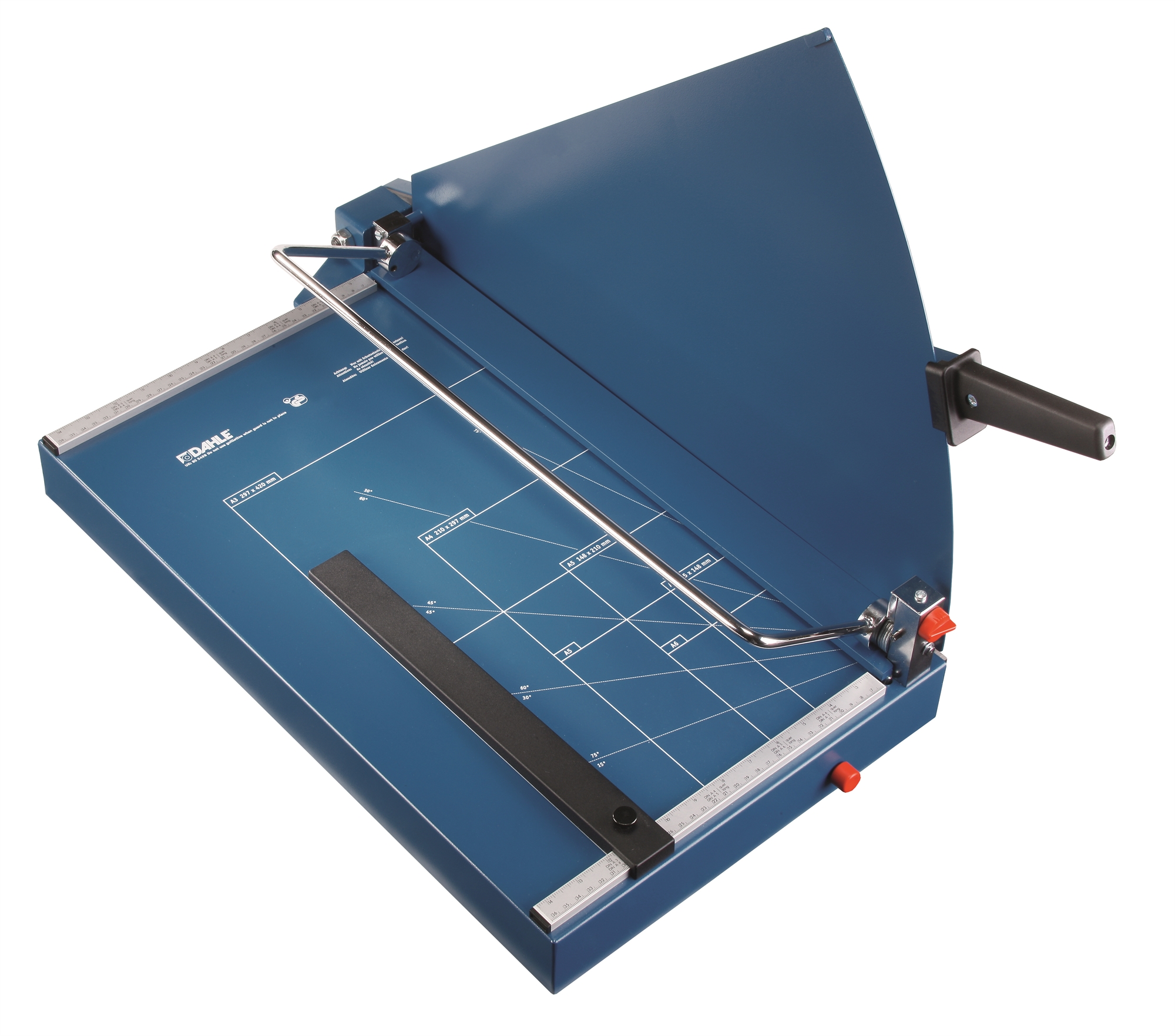 • Dahle 517 är en extremt användarvänlig skärmaskin i giljotin-modell med ett robust metallbord och halkskyddade gummifötter och är perfekt för professionell användning. Denna högkvalitativa skärmaskin levereras med ett ergonomiskt format handtag. Justerbart skruvmonterat bakstopp i metall för att snabbt hitta rätt format - kan användas på båda skalstängerna och högkvalitativt, slipat knivblad av Solingen-stål för långvarig skärkvalitet. Denna produkt har en metallskyddsplatta för ökad säkerhet.