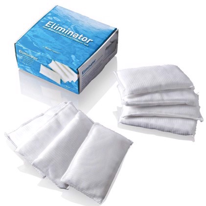 • Eliminator är en hållbar nylonpåse fylld med färgabsoberande material som effektivt förhindrar förorening av fuktvattensystemet.