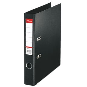 • Folders Esselte standard PP FSC A4/50 mm - svart Folders för dagligt bruk med lock täckt af PP och standardmekanism PP lock utvändigt och inuti Den utbytbara röketiketten gör enkelt din folder personlig. Frontförslutning, fingerhål och metallkanter ger enkel hantering och säker lagring af dokument 350 A4-ark kapacitet (80 g) FSC-certifierad
