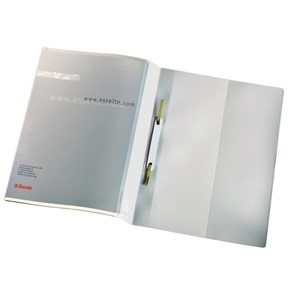 • Erbjudandemapp i PVC med front i dubbelplast för insättning af egen front, vit 90 mm bred ficka inuti.Metallarkiveringsmekanism med plastöverlägg För A4-format
