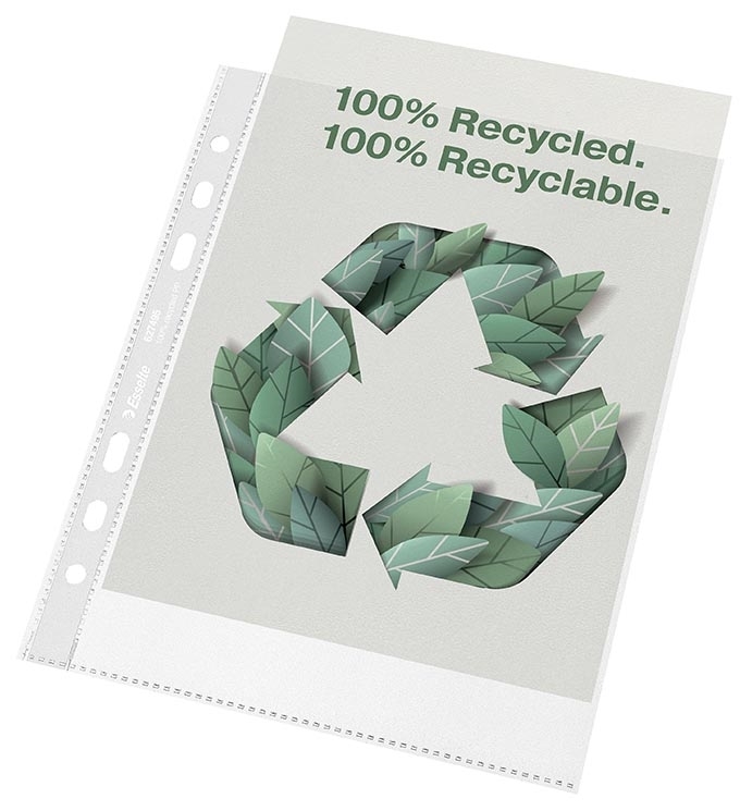 • Miljövänlig A5-dokumentficka för dagligt bruk gjord af stark 100 % återvunnen PP. Flerhålskant ger enkel förvaring af dokument i brev- och ringpärmar. Hela produkten kan återvinnas och återanvändas igen. Fickorna är förpackade i en kartong, som dessutom är 100% återvunnen och återanvändbar. Tillverkad i Europa. Återvunnet innehåll verifierat af UL. - Skyddande A5-plastficka för förvaring och af A5-dokument - Tillverkad av 100 % återvunnen giftfri plast (PP), och hela produkten är 100 % återvinningsbar - Hållbar och långvarig premiumkvalitet säkerställer att de kan återanvändas gång på gång - 6-håls universalförstärkta hålkant för användning i valfri brev- eller ringpärm. Förstärkningen är gjord af genomskinlig återvunnen folie - Format A5 med toppöppning, idealisk för användning på kontoret, hemmakontoret eller skolan - Präglad, matt yta med premiumkvalitetsfolie i 70 mikron tjocklek - Kopieringssäker folie förhindrar att texten blir pappret in i plasten - Syrafritt material förhindrar