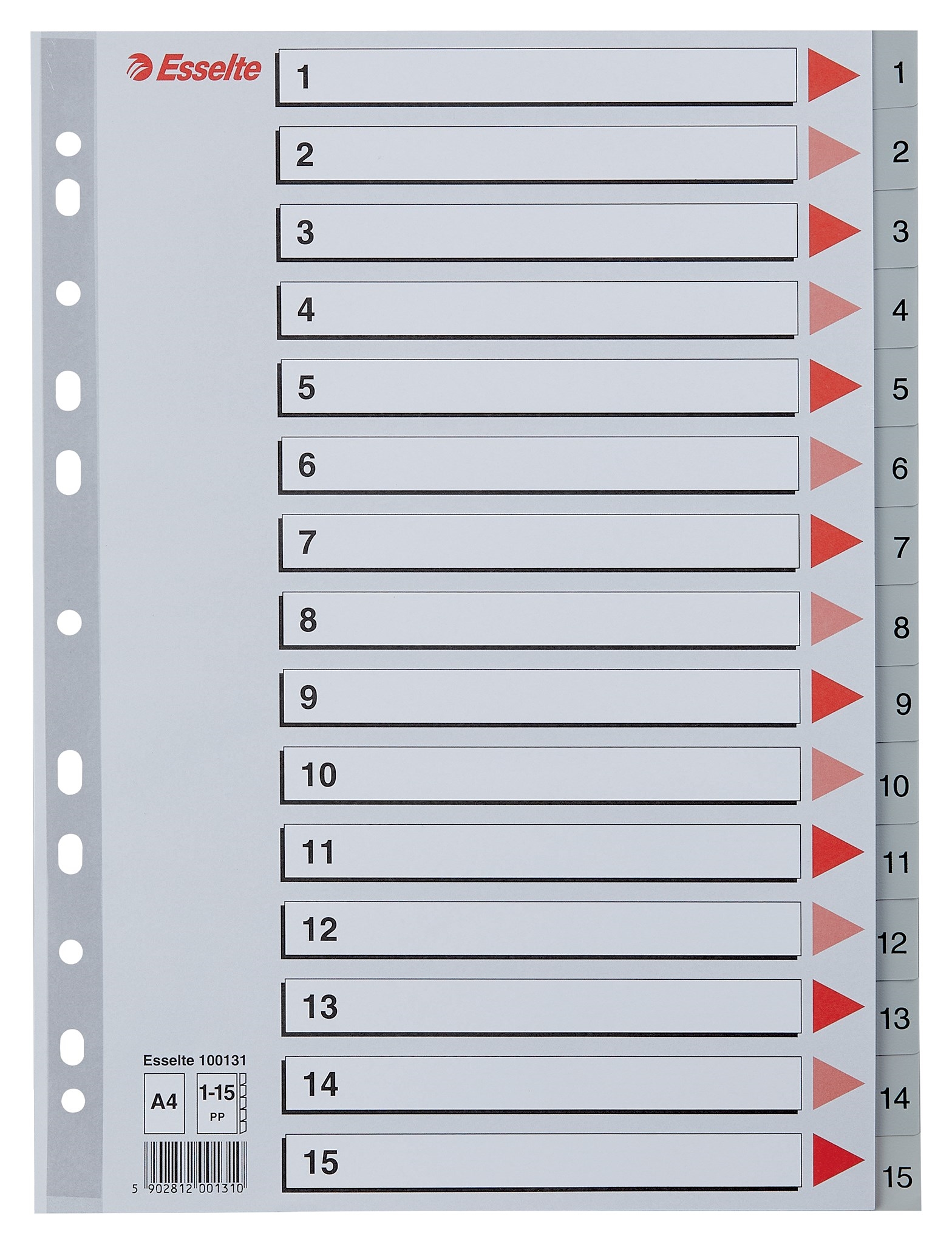Beskrivelse af Esselte Register PP A4 1-15 grå