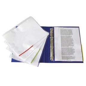 • Kraftig A4-ficka med färgad kant, vilket gör det möjligt att fila efter färgkod. Glasklar 0,105 mm återvinningsbar PP-folie, copysafe. Öppning upptill, samt på höger sida halvvägs öppen från ovan.11 hål för universell användning