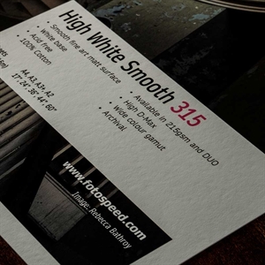 • Fotospeed High White Smooth 315 är 100 % bomull och pH-neutralt konstpapper med en slät yta.