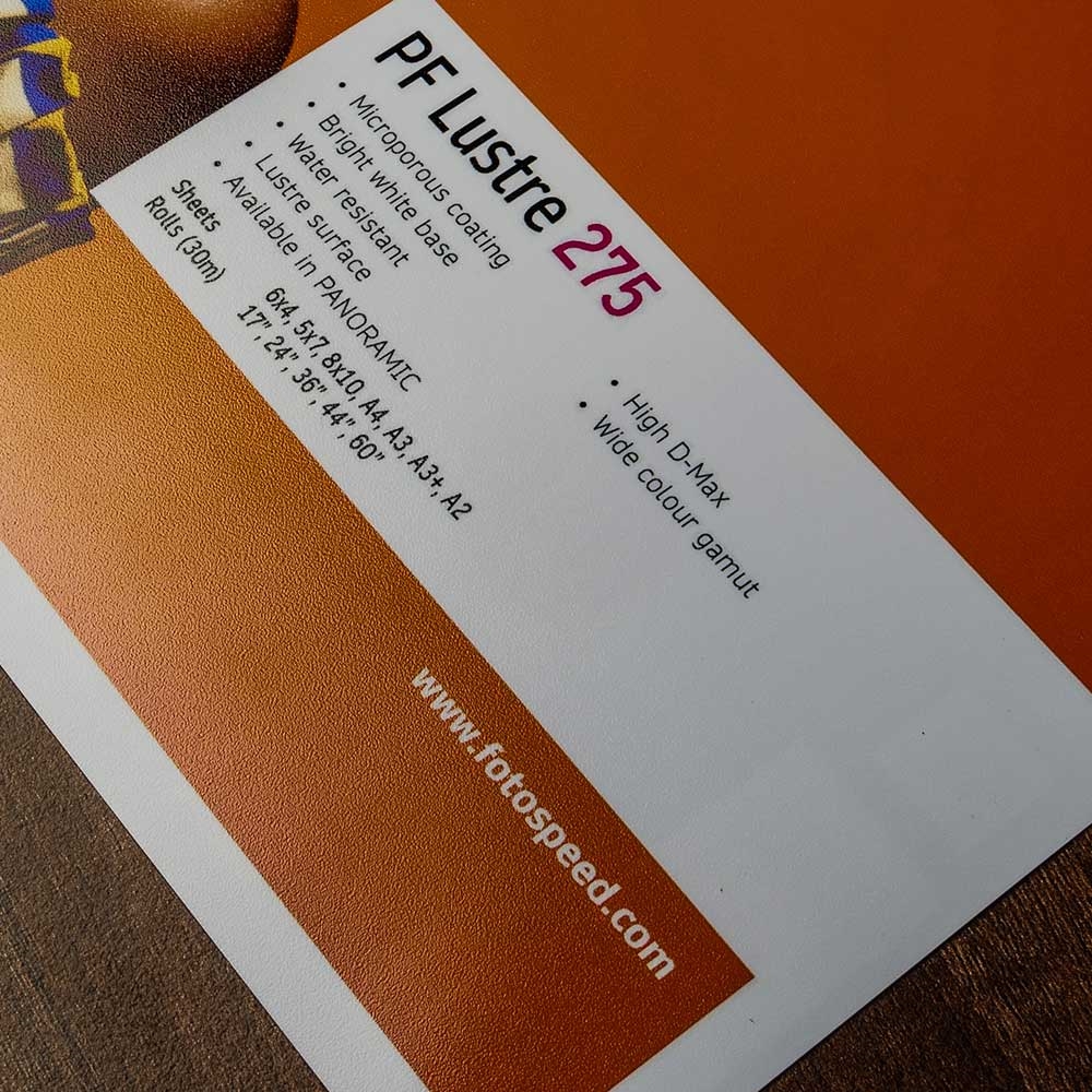 • Fotospeed PF Luster 275 är ett klassiskt fotopapper med en lysterfinish.