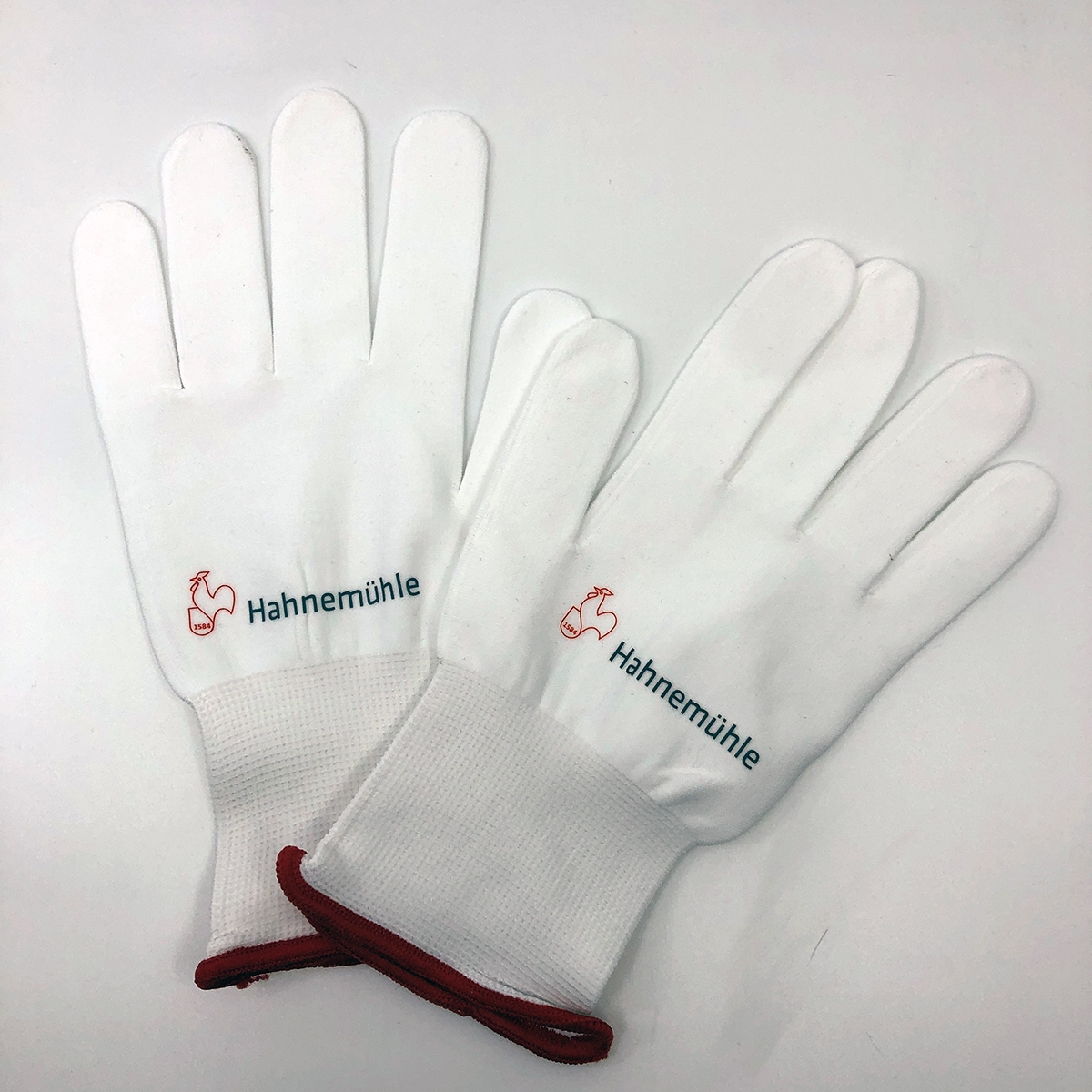 • Specialutvecklade handskar för hantering av utskrifter. Hahnemühle Fine Art Gloves ser till att du inte lägger fettfingrar eller något annat på dina utskrifter. Det är vår tydliga rekommendation att aldrig använda dessa handskar vid hantering av all försäljning stora format skrivarpapper. Både matt (obestruket) och blankt (bestruket) papper.