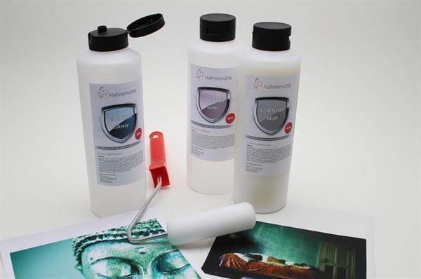Hahnemühles lack är snabbtorkande och levereras klart för bruk.
