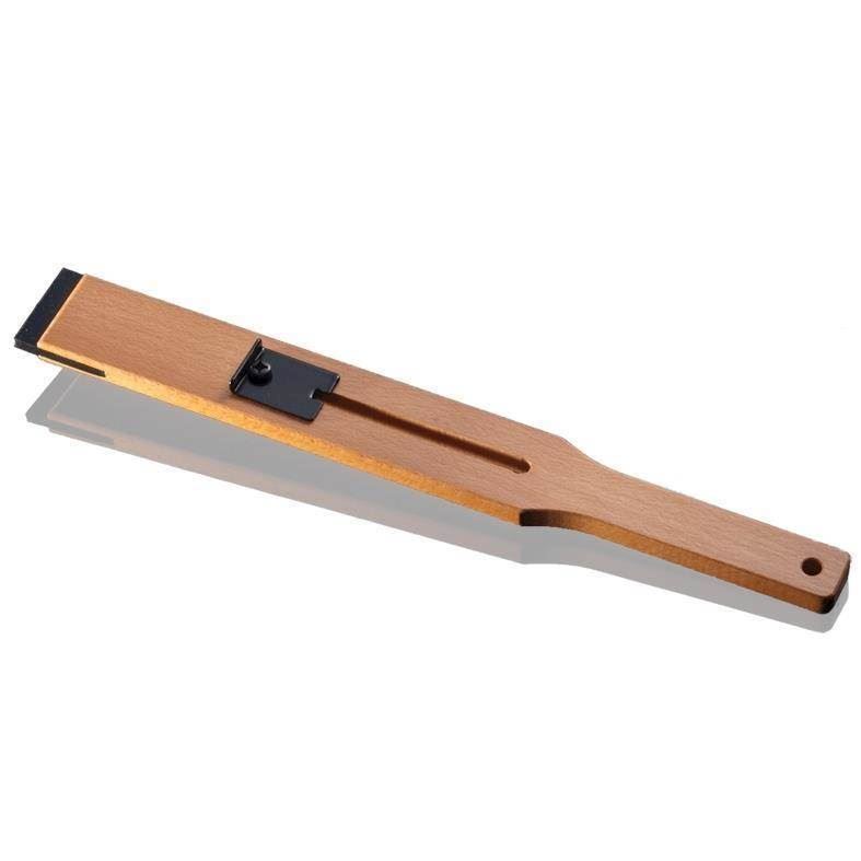 Made of lacquered hard wood with hickey remover wedged in and fastened in place.