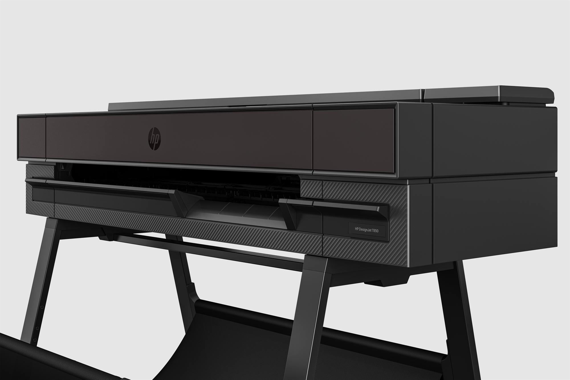 HP T850 är en del av en liten familj som består av den och HP T950. Det är nästan samma skrivare, men med små nyanser som gör skillnaden. HP T950 är den snabbaste skrivaren med en utskriftshastighet på upp till 120 A1 i timmen. Dessutom har den pappersfack för ark och en avstaplare. Båda dessa är tillval för T850. Se vårt översiktsbild som jämför modellerna.