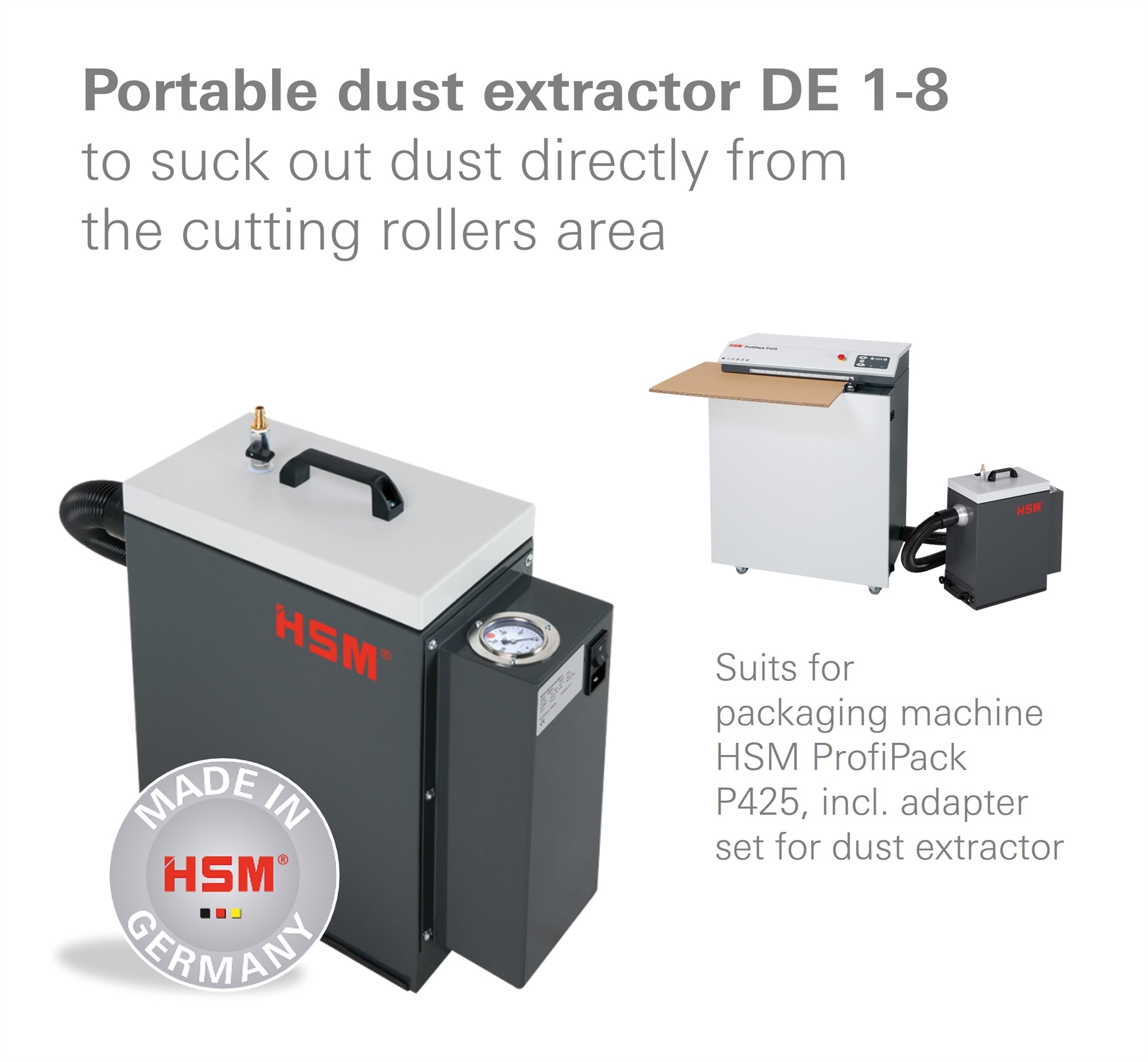 • Den kompakta och högpresterande dammavskiljaren i dammklass M är det perfekta komplementet för ren drift af förpackningsstoppningsmaskinen HSM ProfiPack P425. Kartong och dammpartiklar utvinns effektivt.• Dammavskiljaren kan anslutas till förpackningsstoppningsmaskin HSM ProfiPack P425, inkl. anpassningsset för utsug.• De värdefulla materialen och kvaliteten "Made in Germany" garanterar säkerhet och lång livslängd.• Dammuppsamlarens kompakta design sparar plats.• Den tysta driften minimerar buller på arbetsplatsen.• Driften är särskilt ekonomisk tack af den återanvändbara filterpatronen.• Det integrerade tryckluftsrengöringsmunstycket gör det enkelt att rengöra den permanenta filterpatronen.• Dammavskiljaren uppfyller kraven för dammklass M.• Den enkla dammhanteringen sker via en uppsamlingslåda med en uppsamlingsbehållare som enkelt kan tas bort.• Dammavskiljaren har AC-anslutning.• Tack vare bärhandtaget kan enheten användas mobilt.