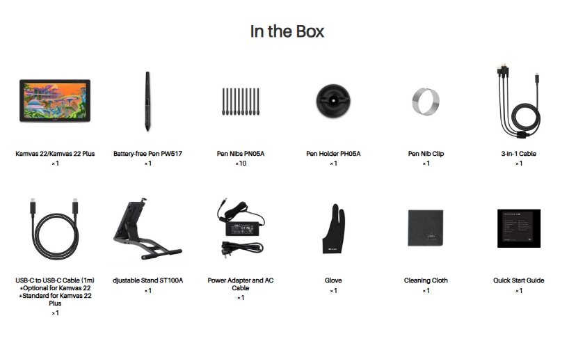 Oavsett om du använder en stationär dator, en MacBook eller till och med en Android-telefon, kan du ansluta den direkt till Kamvas 22/Kamvas 22 Plus utan en USB C till HDMI-adapter. Vår 3-i-1-kabel och USB-C till USB-C-kabel kan hjälpa dig att undvika röran och ge dig en prydlig arbetsyta.