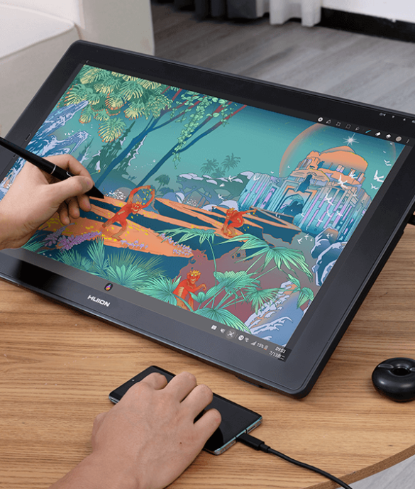 Med en 23,8-tums bred skärm säkerställer Kamvas 24 Plus inte bara en tydlig och skarp bildpresentation, utan förhindrar också avbruten zoomning in eller ut ur duken.