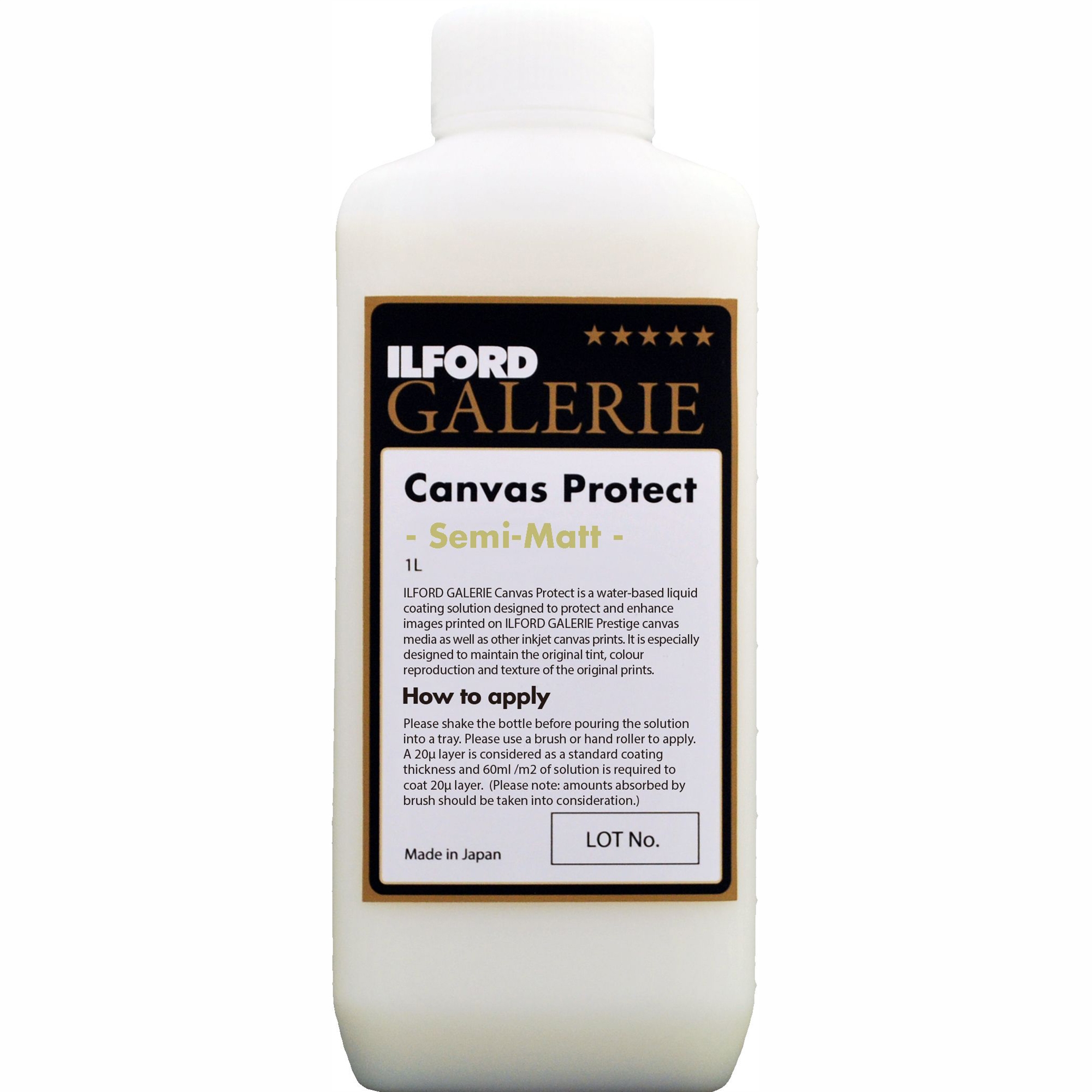• Ilford Galerie Canvas Protect är en vattenbaserad flytande beläggning designad för att skydda och förstärka bilder tryckta på Ilford