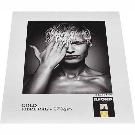 • Ilford Galerie Gold Fiber Rag har utseendet och känslan av ett traditionellt barytapapper med en unik mjuk struktur och en gloss finish. Gold Fiber Rag ger ett ovanligt stort färgomfång. Den ljusa vita ytan garanterar intensiva svartvita reproduktioner som matchar utseendet på silverhalogenidtryck perfekt.