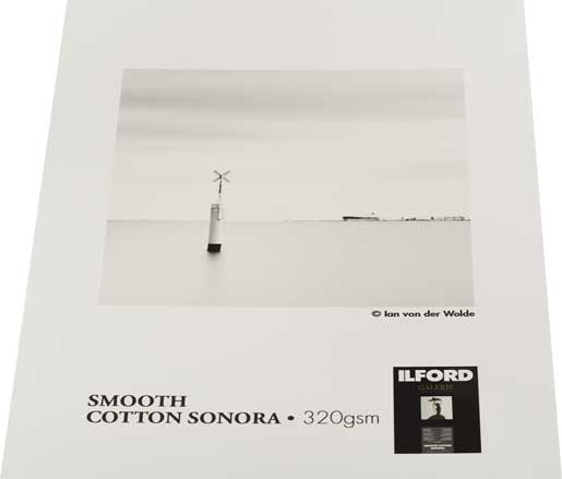 • Ilford Galerie Smooth Cotton Sonora är ett bomullstillverkat, matt konstpapper med en slät yta och naturlig vit nyans. Den har en mycket slät, sammetslen känsla och är idealisk för konstnärliga tryck för utställningar. Smooth Cotton Sonora producerar livfulla färger samt imponerande svartvita utskrifter.