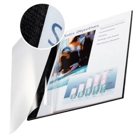 • Rälsomslag/bokomslag mjukt med canvastryck, svart A4, med genomskinlig framsida och canvastryckt baksida, för 15-35 ark Transparent framsida är idealisk för skräddarsydd design Ryggraden och baksidan av omslaget är i canvasstruktur Kan rymma upp till 35 A4 ark (80g) Presentationen är klar på ett ögonblick Klar förstasida