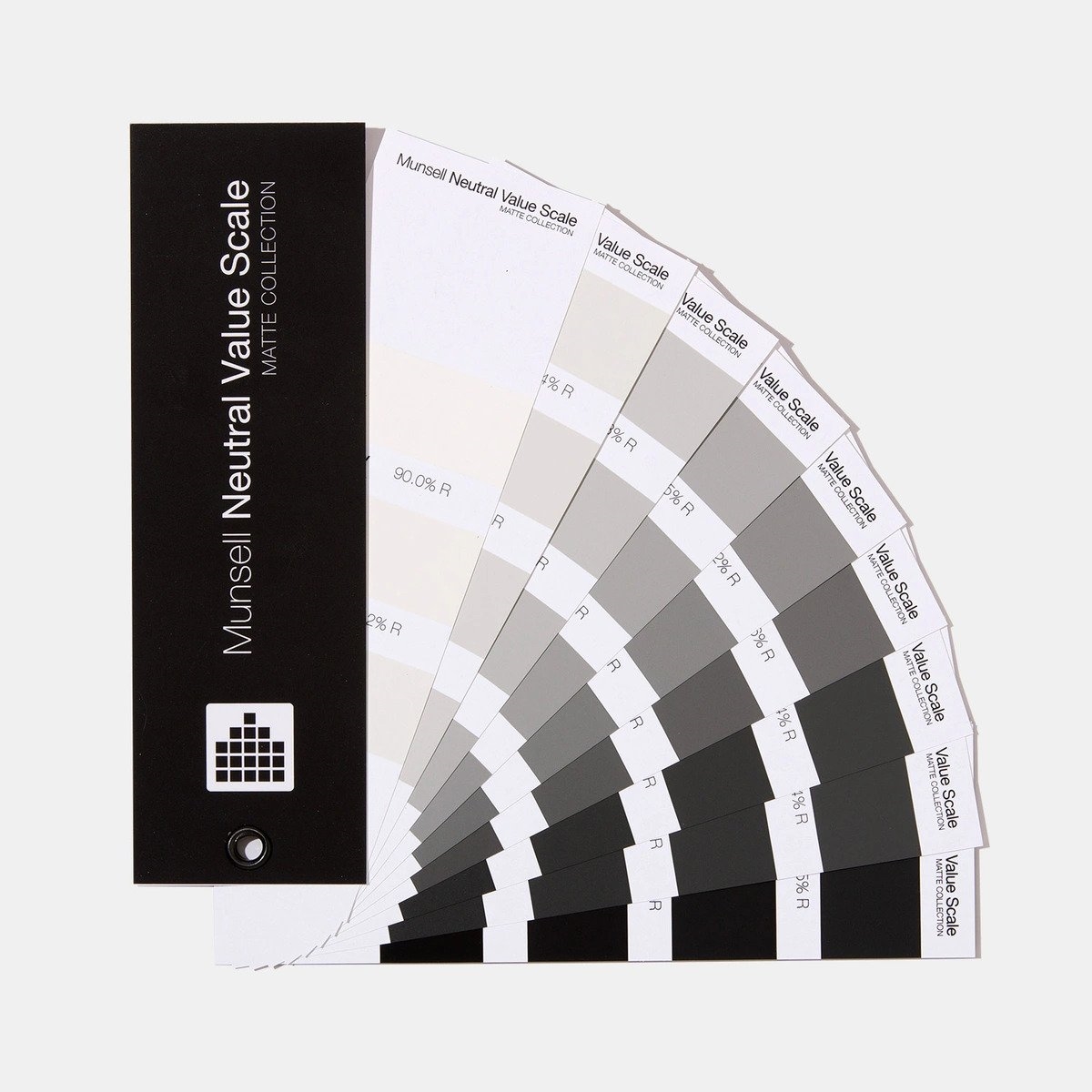 Munsell Neutral Value Scale, även känd som en Munsell Grey Scale eller Neutral Colour Chart, är en gråskalaventil med värden från 0,5/ till 9,5/ i kvartstegsintervall. Munsell-notation och % reflektans för CIE Illuminant C skrivs ut för varje neutralt färgkort. Varje neutral färgbricka är 3" x 2" x ¾" och de kompletta gråskaladiagrammen finns tillgängliga i blank eller matt utgåva.