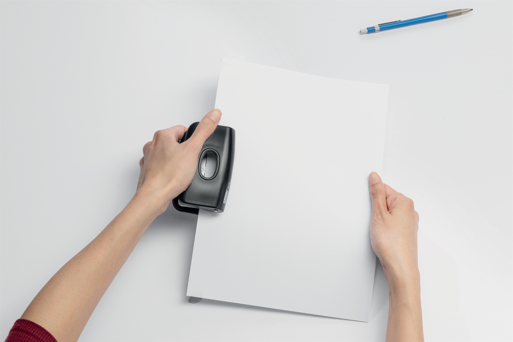 • Stark metallpiercinganordning med handtag och bas i förstärkt ABS-plast. För användning i hemmet eller skolan. - Hål upp till 10 ark (80 g) - Behändig, bärbar och stark - Förstärkt ABS-plasthandtag och bas - Integrerad, lätt att tömma, konfettibehållare i plastbasen