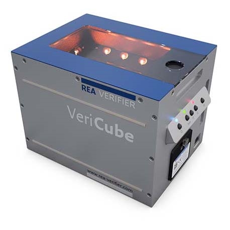 • REA VeriCube IR (infraröd) är en toppmodern matris- och streckkodsverifieringsenhet som kan användas inom alla industrisektorer. Oavsett om det ligger ner, står upp eller från topp till botten kan praktiskt taget vilket testprov som helst mätas beröringsfritt i den optimala mätpositionen.