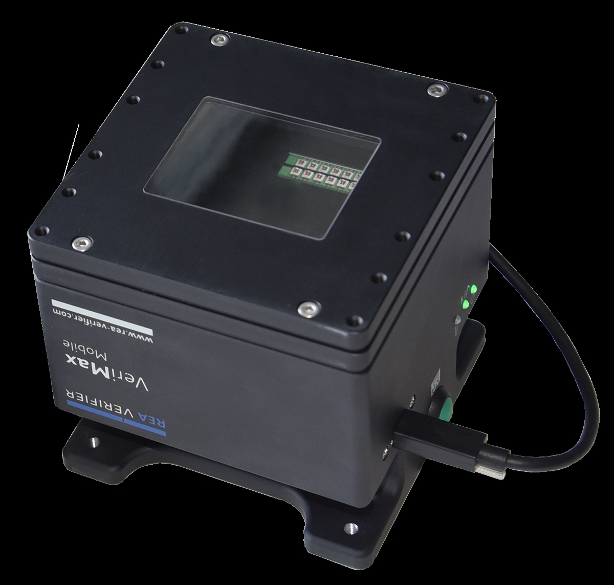 • REA VeriMax Mobile är ett mobilt offlinekodverifieringssystem för 1D- och 2D-koder. Med sin praktiska storlek på 12x12 cm och möjligheten att montera en surfplatta direkt på kuben kan den användas varhelst det behövs - produktion, laboratorium, inkommande varor eller kvalitetssäkring. Den kontrollerar 1D/2D-koder för deras läsbarhet och innehållsnoggrannhet direkt på plats - naturligtvis i enlighet med normer, ISO-standarder, juridisk kvalitet och användarspecifikationer.