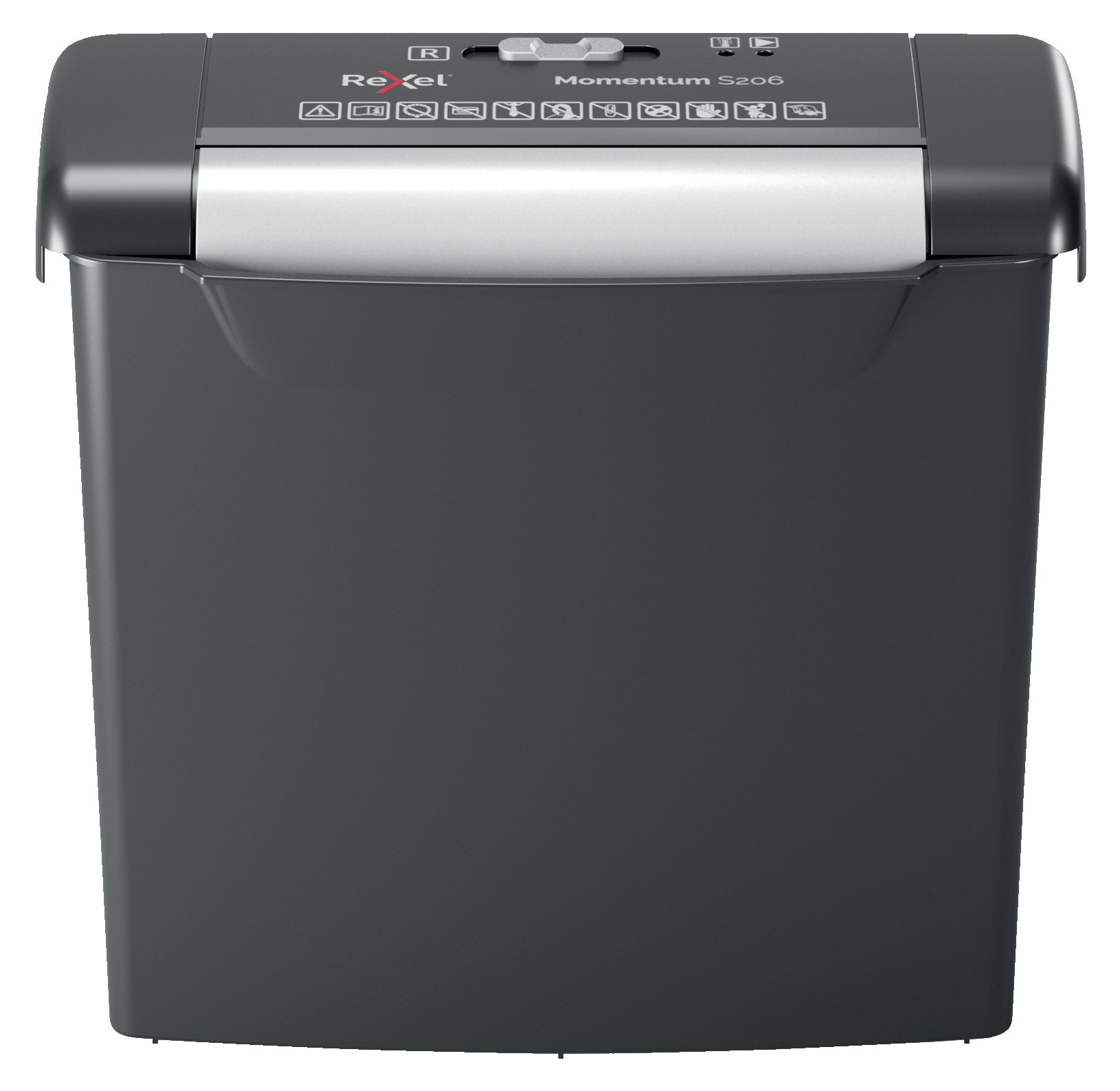 • Kraften att strimla mer! Rexel Momentum S206 river upp till 6 ark samtidigt med 2 minuters konstant rivningstid. Idealisk för hemmabruk. P2, remsa i 6 mm bitar. 9 liters behållare med kapacitet på 75 A4-ark. - Strimlar upp till 6 pappersark samtidigt - Standard rivningssäkerhetsnivå med P2, strimlar 6 mm bitar - Strimlar fler papper under en längre period med 2 minuters kontinuerlig drifttid - 9 liters behållare med en kapacitet på 75 A4-ark