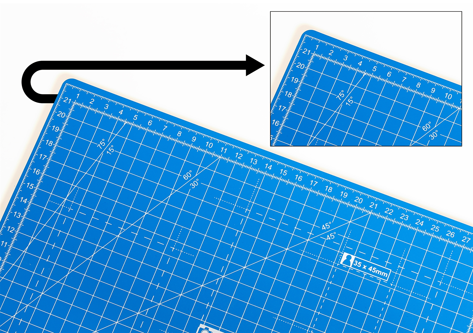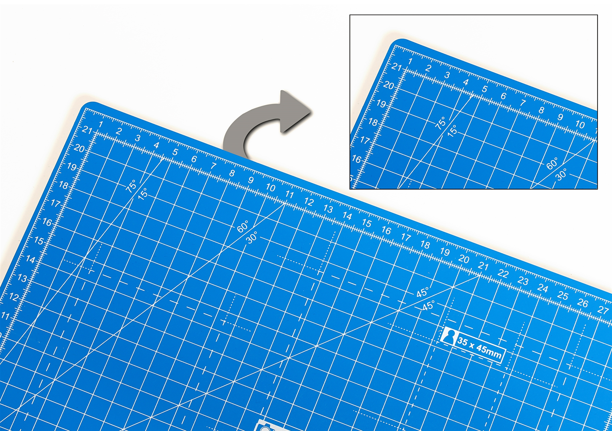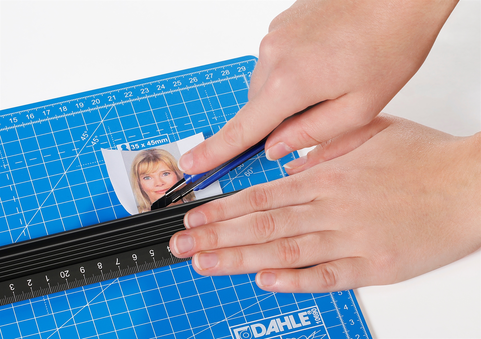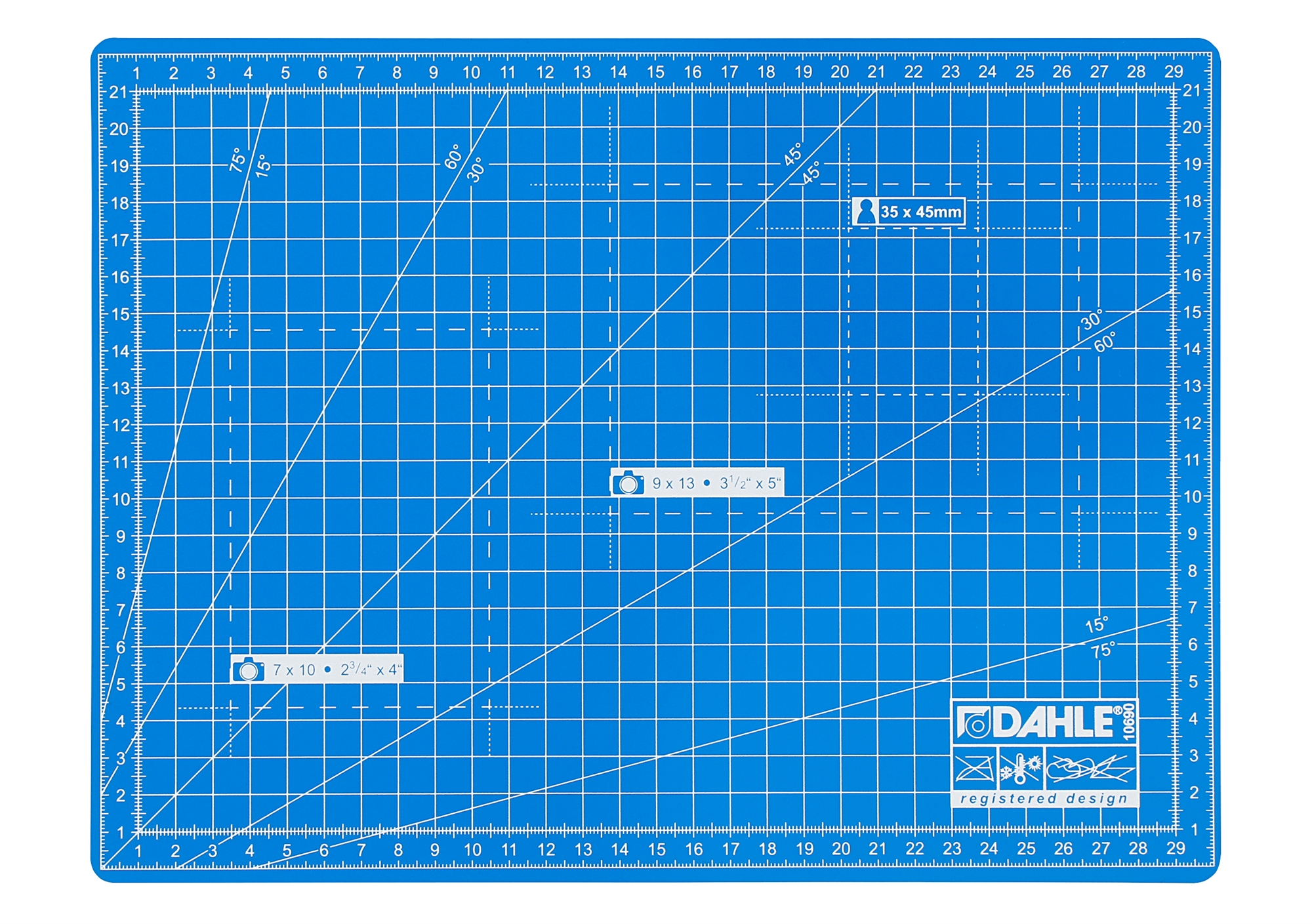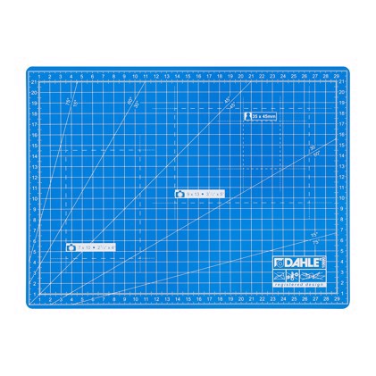 • Här är Dahles robusta skärmatta i tre lager. Skärmattan har en självläkande yta och har tydliga riktlinjer för dig för att uppnå optimal placering av materialet som ska skäras.