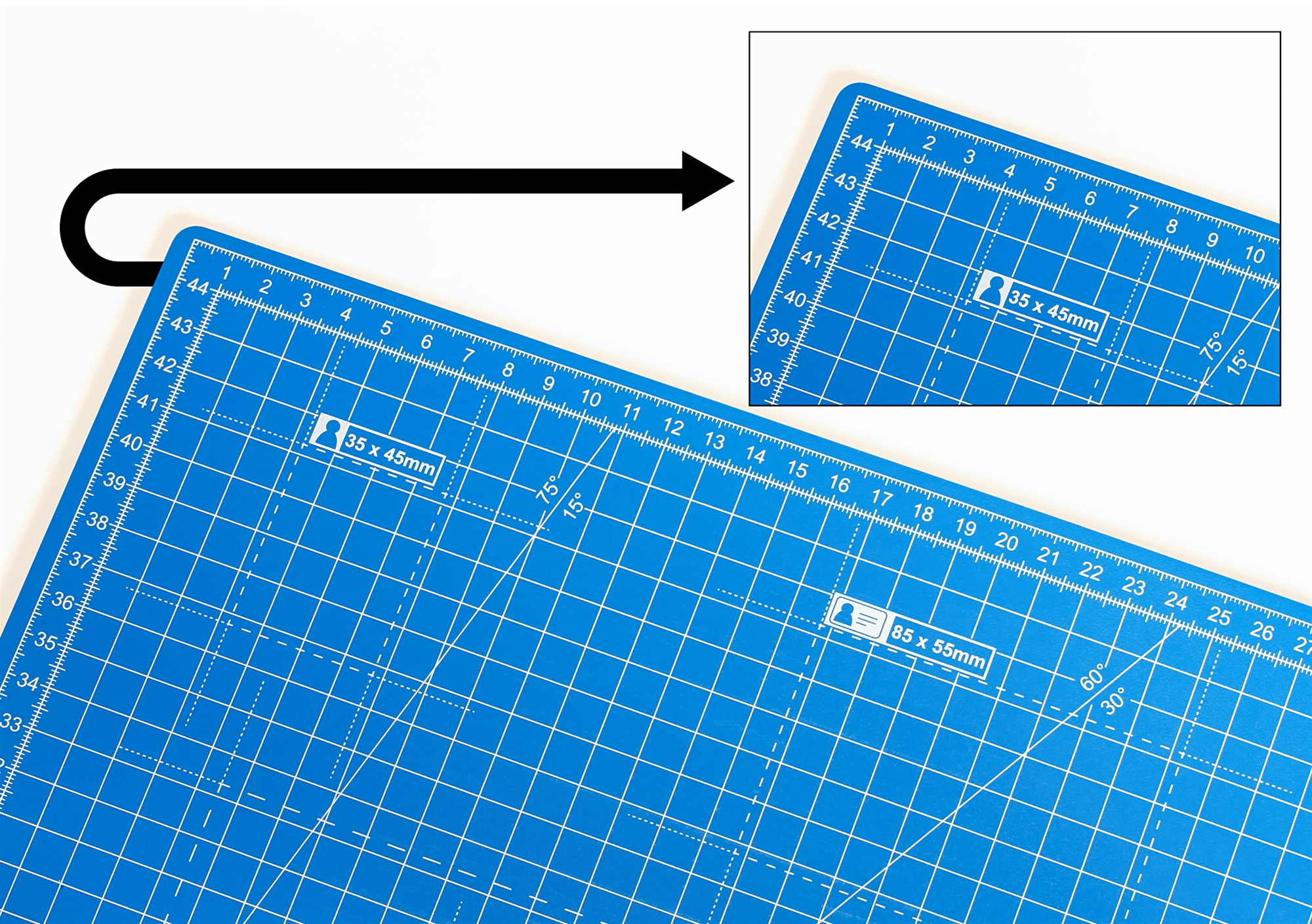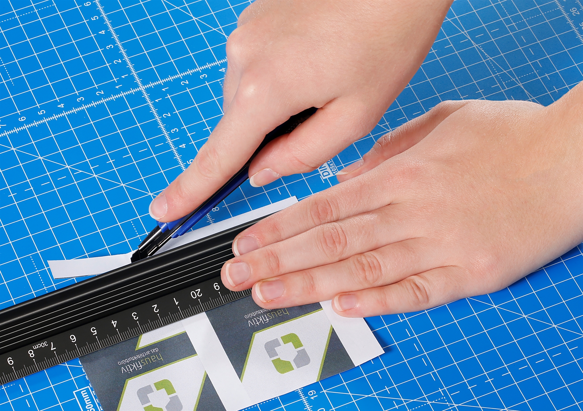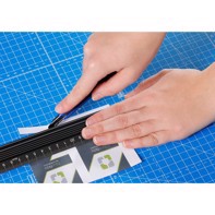 • Här är Dahles robusta skärmatta i tre lager. Skärmattan har en självläkande yta och har tydliga riktlinjer för dig för att uppnå optimal placering av materialet som ska skäras.