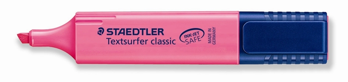 • Markeringspenna Textsurfer Classic för markering på papper, fax, bläckstråleutskrifter och kopior. Inkjet Safe ink ser till att bläckstråleutskrifter och handskrivna texter inte smutsas ut genom en enkel överstrykning. Snabbtorkande. Vrid lock för enkel öppning. Ultramjuk bred spets ca. 1 - 5 mm. Påfyllningsbar. Rosa. Gjord i Tyskland