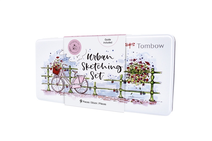 • Med Urban Sketching har du möjlighet att rita det du ser på plats eller fotografera motivet för att färdigställa det hemma i lugn och ro. Tombow Urban Sketching af setet innehåller ett urval af matchande Tombow produkter som kan kombineras perfekt med varandra, en steg-för-steg-guide af konstnären Carla Kamphuis och en vackert designad metalllåda av hög kvalitet. Metalllådan innehåller följande produkter : • 1 x MONO 100 penna för att göra af ritningar och skisser. Hårdhetsnivå 1H (hård).• 1 x MONO XS suddgummi: Den mjuka texturen gör raderingen extra bekväm och ger de bästa raderingsresultaten.• 1 x Penselpenna Fudenosuke med mjuk spets: Kan användas för att spela in de preliminära ritningarna af MONO 100. Den elastiska spetsen kan användas för att skapa olika linjebredder, från mycket fin till bred. Detta skapar en skissartad ritstil.• 2 x Tombow ABT Dual Brush Pe